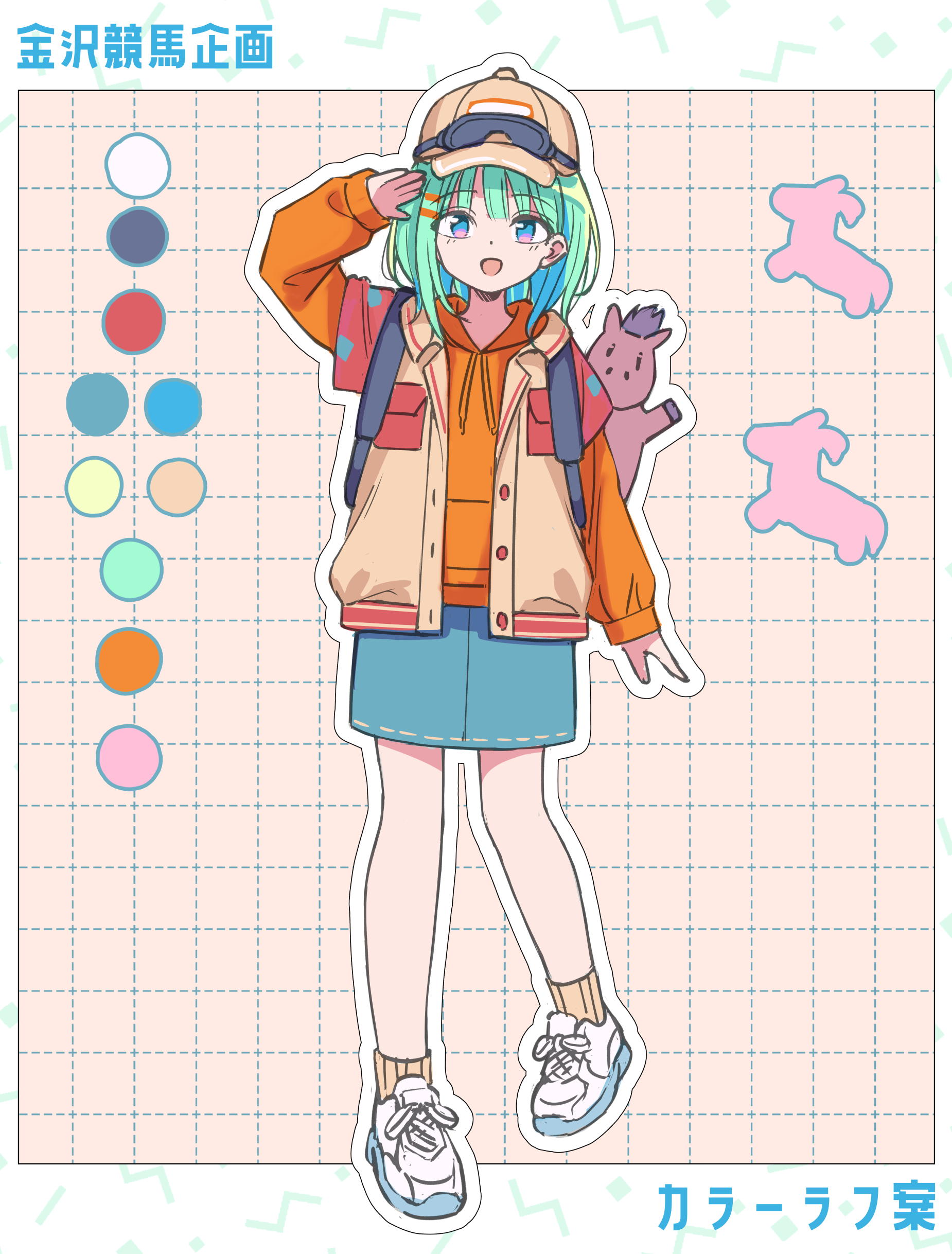 制作の中では、競馬で使われる帽色(白黒赤青黄緑橙桃)やマスコットキャラクター等