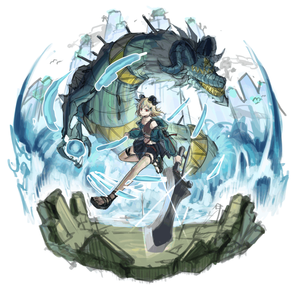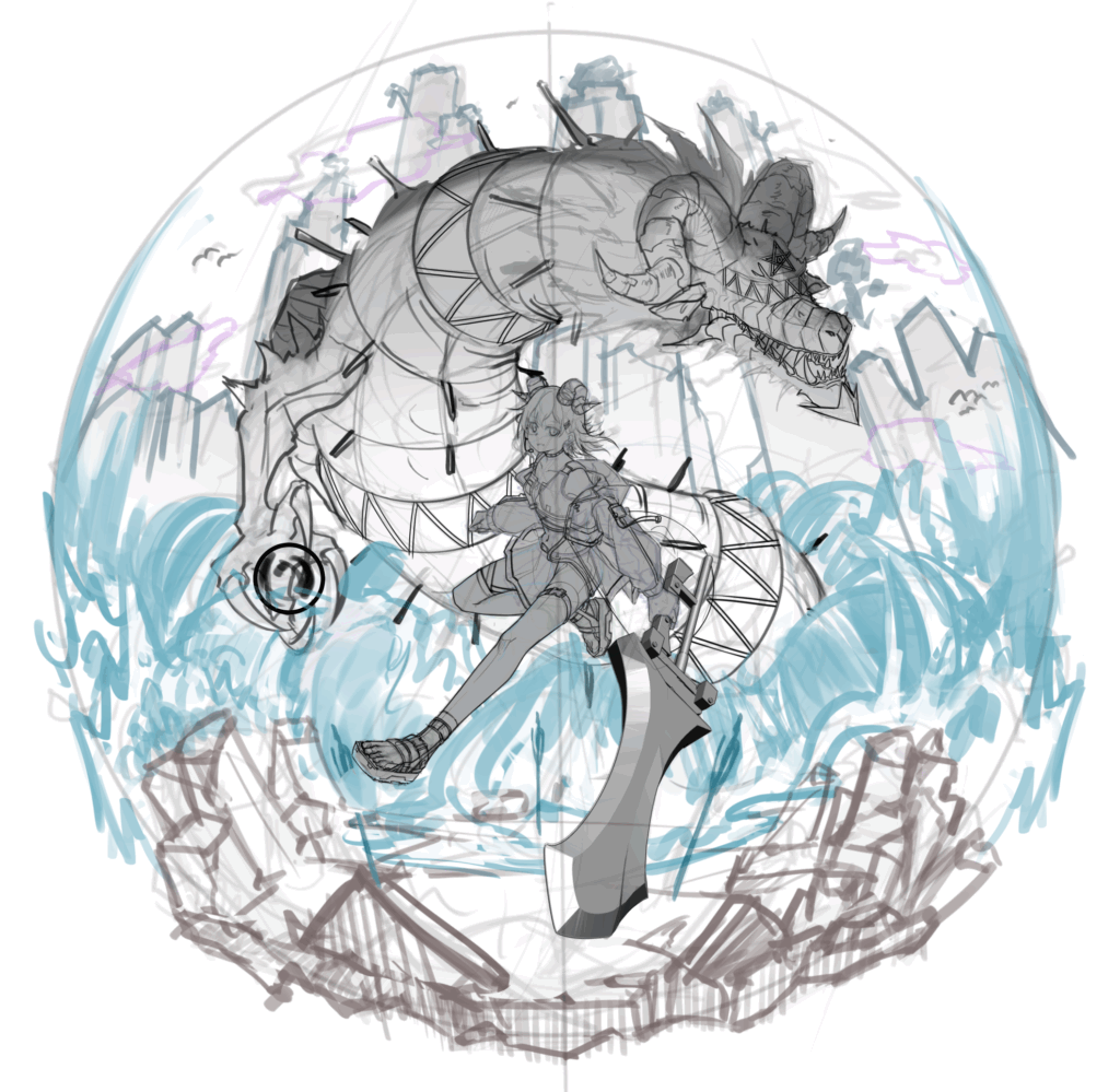 ゲームで使用されるイラストとして想定しているので、キャラとモンスターの配置の方法や