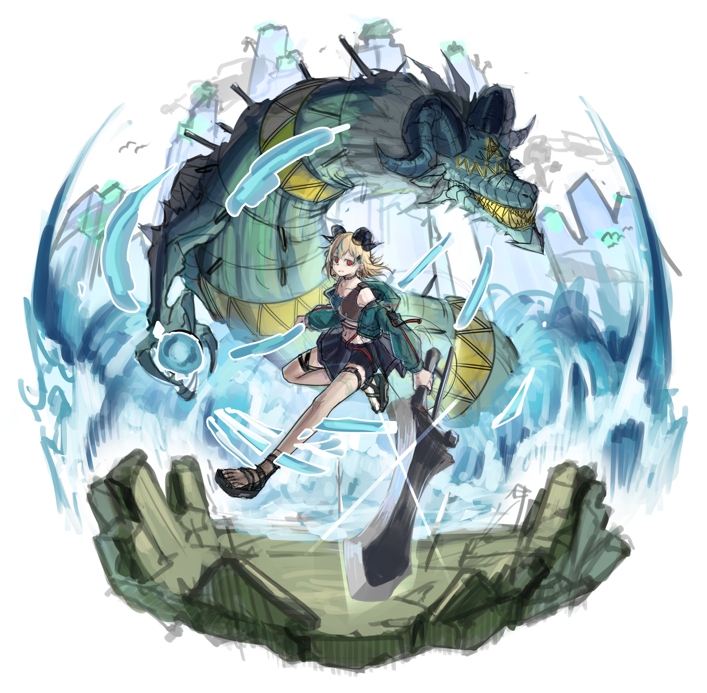 ゲームで使用されるイラストとして想定しているので、キャラとモンスターの配置の方法や